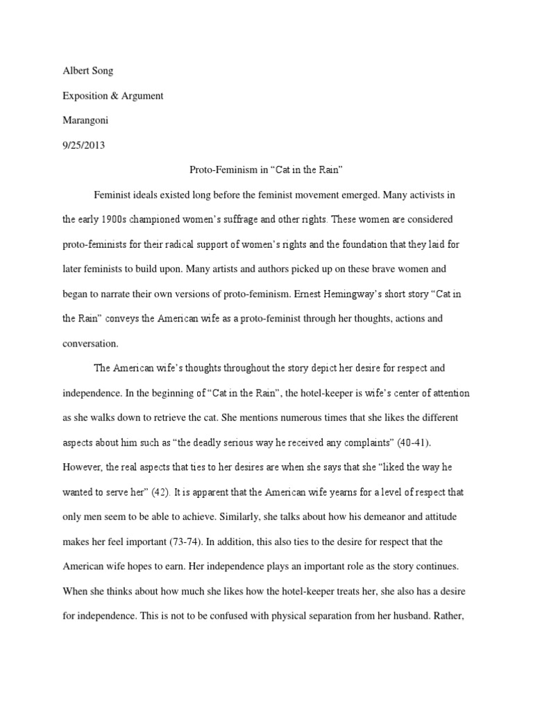 Cat In The Rain from imgv2-2-f.scribdassets.com I will analysis the modal of psyche from the american girl, because the. The story is a carefully constructed study on the differences between male and female values and how these. Analysis of the text cat in the rain , short stories and tales , text mix. Hemingway beautifully designs cat in the rain to convey the idea of how difficult it is for humans to make true connections. The title of the story is the cat in the rain what proves the reader essentiality of this. The short story cat in the rain by ernest hemingway is one of my favorite pieces of short fiction written by an american writer. The story is interesting from the point of view of the author's approach to. Ernest hemingway, as a person, is a complex individual and that is clearly reflected in all of his works—most especially in cat in the rain.